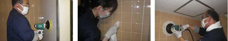 ③ 壁、床の清掃-ポリッシャー+リンサー=基本的汚れの除去→磨き上げ