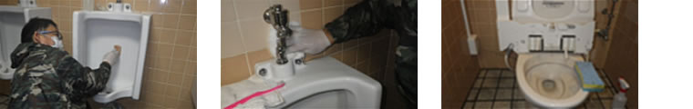 ② 便器・小便器の清掃・・・・・毎日のメンテナンスが必要〔黄色い尿石の除去→白い便器にする〕