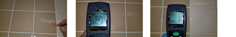 ※清浄度検査 この洗浄制菌加工されたタイルは施工前の細菌の数値は10255(細菌発光体の数値)施工後には53に低下