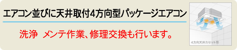 特に天井取付4方向パッケージ型エアコンは室内の広さによりエアコンの数量を計算され取付けられており、室内の隅々まで冷暖房を送風してくれます。