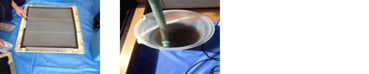 4方向カセット型エアコン冷媒機に既存プレフィルターにネオゾーンを取付け1年後に本体内部を洗浄
