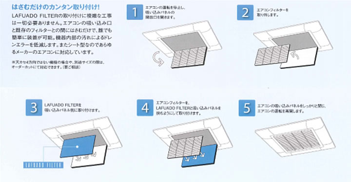 抗菌消臭フィルターの取付方法(常備品は4方向エアコン、ルームエアコン※その他は受注生産)